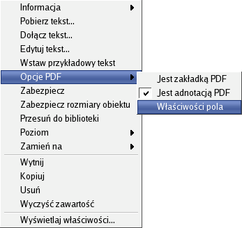 Kiedy już je utworzysz, użyj palety dla kosmetycznych poprawek. Następnie kliknij prawym przyciskiem myszy na element PDF i wybierz F z menu kontekstowego. Kliknij znowu prawym przyciskiem myszy na elemencie i wybierz tym razem . Możesz również podwójnie kliknąć na elemencie PDF, aby zacząć konfigurować jego opcje. Wszystkie właściwości PDF pokazane zostały tutaj na zrzutach ekranowych, wystarczy więc patrzeć i uczyć się. Przyjemnej zabawy.